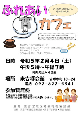 ふれあい宵カフェが2月4日(土)午後5時~午後7時で、ひさしぶりに開催されます。